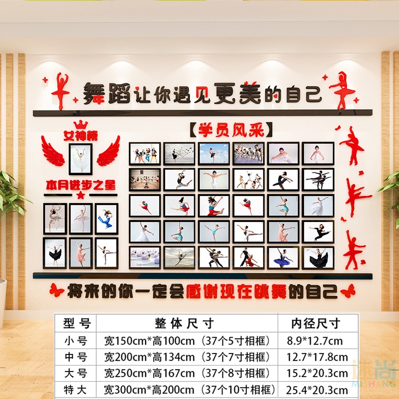 学员风采照片墙装饰舞蹈教室布置舞蹈房学校艺术培训班3d立体墙。热门设计联盟服务商