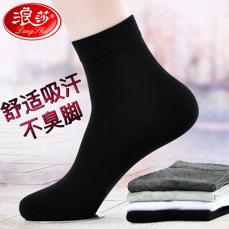 浪莎正品5双装棉袜男袜子透气四季男袜中筒防臭吸汗黑色商务长袜热门设计联盟服务商