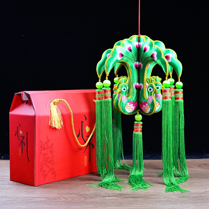 纯手工孔雀灯凤灯宫灯布艺刺绣装饰挂件客厅卧室中国凤小礼品。热门设计联盟服务商