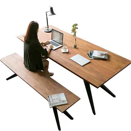 北欧设计师工业风办公桌写字台书桌铁艺实木会议桌长桌Z餐桌椅组热门设计联盟服务商