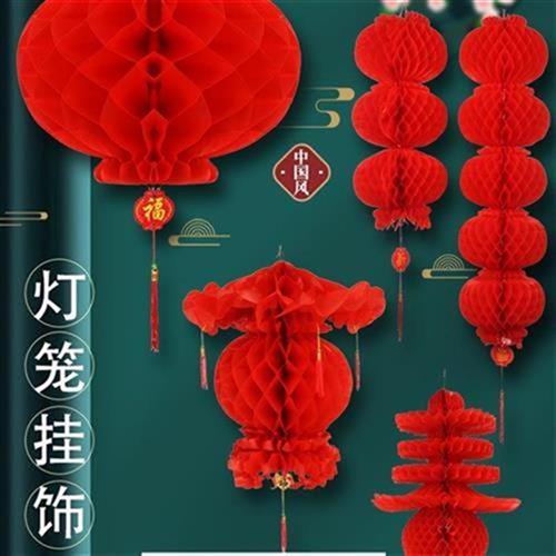 大红蜂窝塑纸连串小灯笼挂饰牛y年B新年元宵节过年装饰场景布置用热门设计联盟服务商