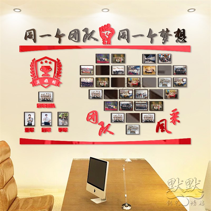 立体照片墙贴公司员工学校师生励E志采办公室亚克力文化墙贴饰热门设计联盟服务商