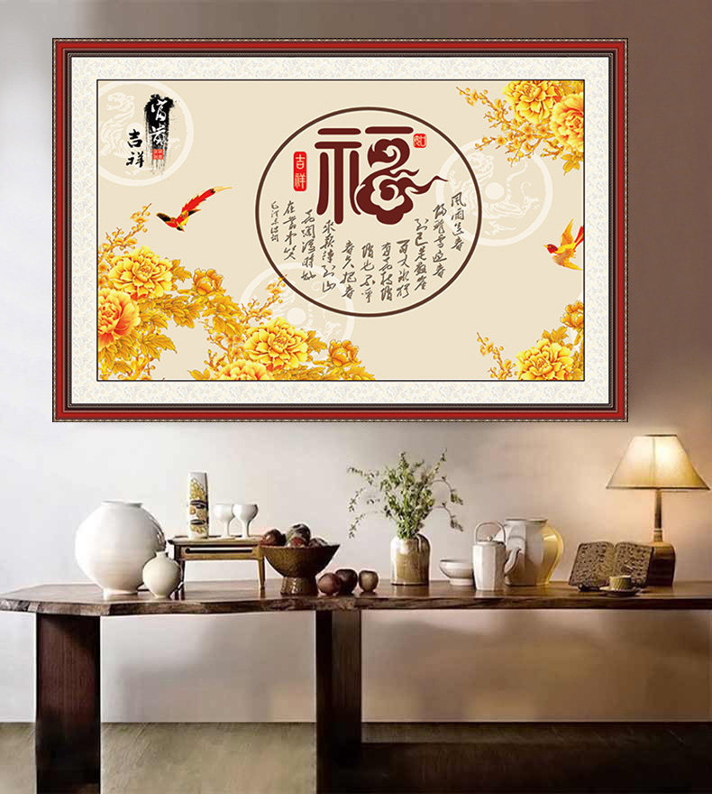 福图中式宅墙客厅镇招财沙发装饰字壁画背景自粘贴福画横幅画百热门设计联盟服务商
