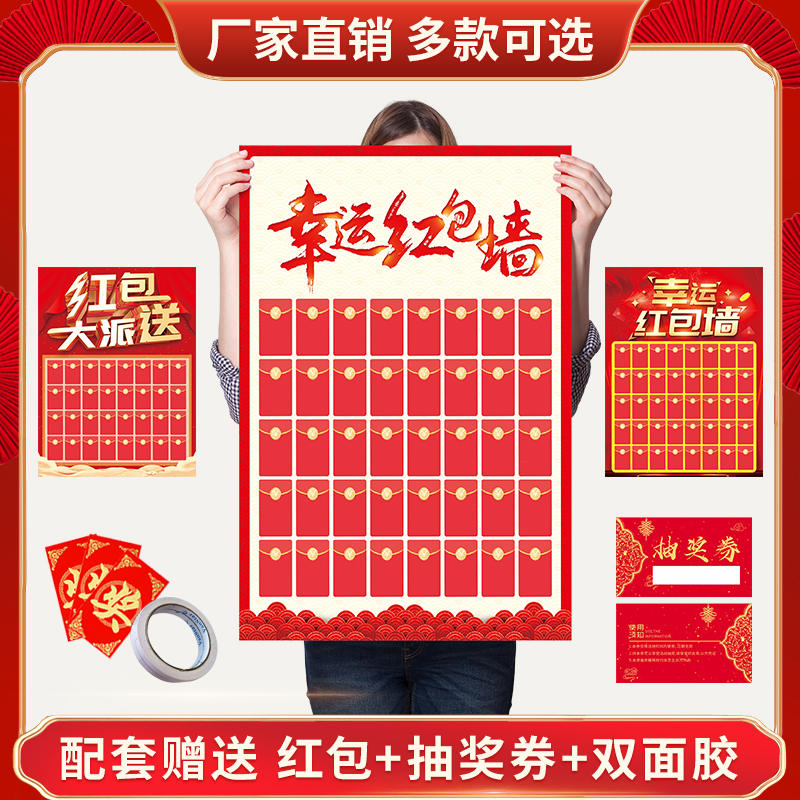 红包墙布置周年庆抽奖活动海报美容院开业布置店庆元旦节日促销新热门设计联盟服务商