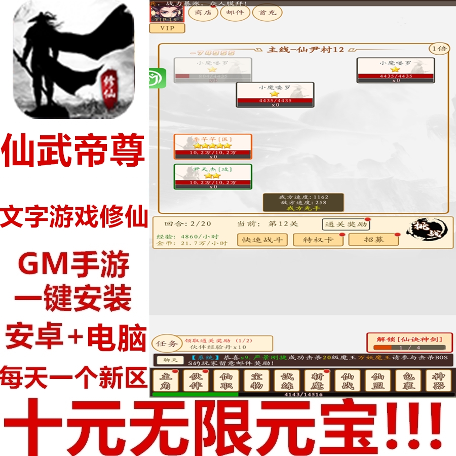 仙武帝尊GM手游文字游戏修仙非安卓游戏非单机GM后台无限元宝热门设计联盟服务商