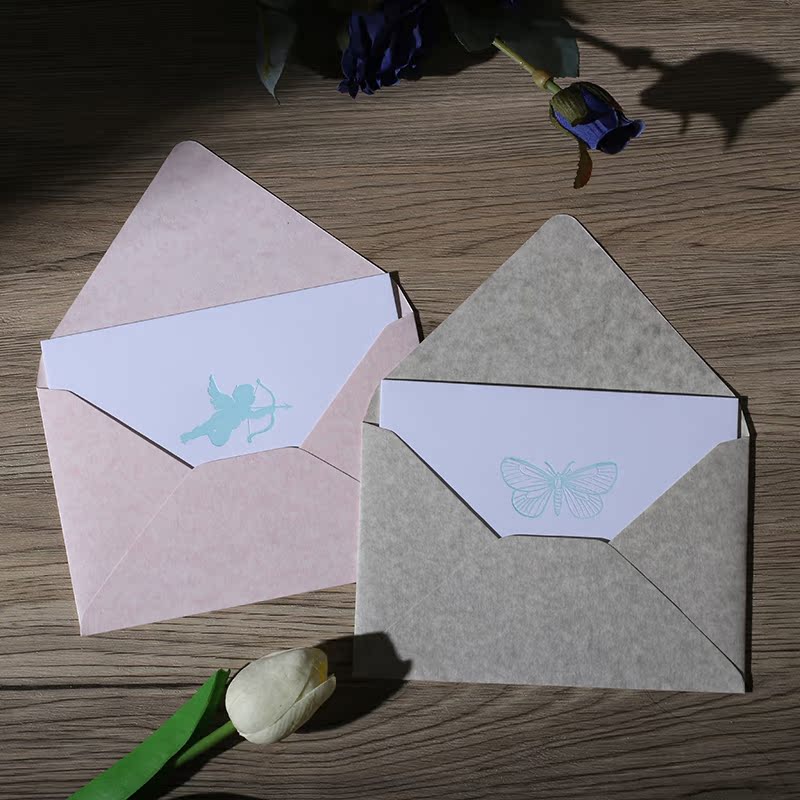 唯美卡片信纸信封粉色灰色高级艺术感请柬复古清新精致教师节贺卡热门设计联盟服务商