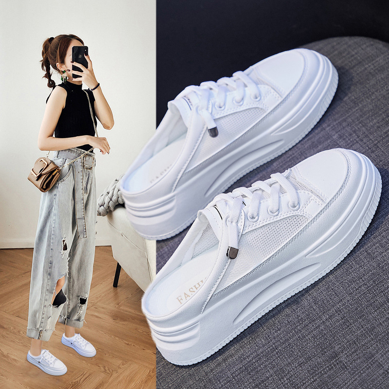 ins透气网面小白鞋女2022夏季新款韩版学生半托网鞋厚底休闲QR06热门设计联盟服务商